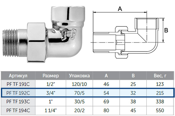 Американка ProFactor pfTF192C 3/4" угловая, хорм