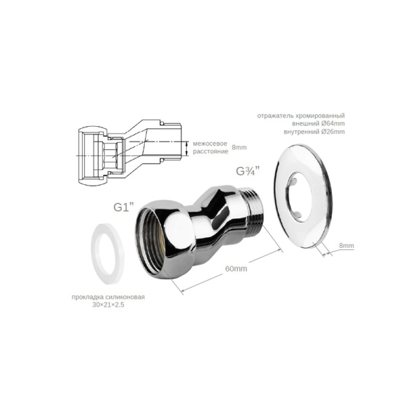 Футорка 1/2*3/4 хром RR 511