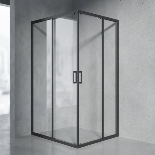 Душевой уголок AVS Слайдер Куб 90-100x90-100 профиль черный матовый, стекло прозрачное