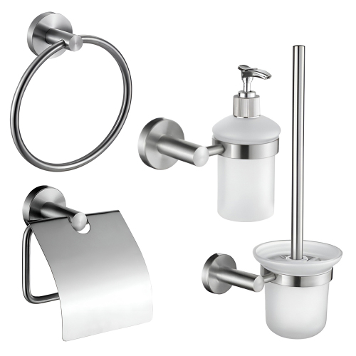 Набор Accoona 121 нержавеющая сталь Ершик+Дозатор+Бумагодержатель закрытый+Полотенцедержатель-кольцо