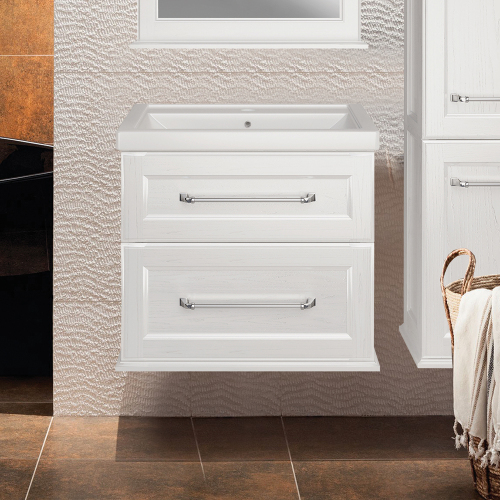 Тумба с раковиной ASB Wood Line Венеция 70 белая, патина серебро