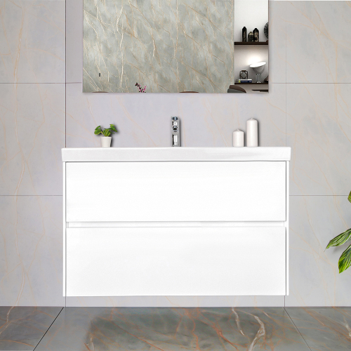 Тумба с раковиной AVS Вернисаж 100 белая глянцевая (раковина белая), подвесная 2 ящика