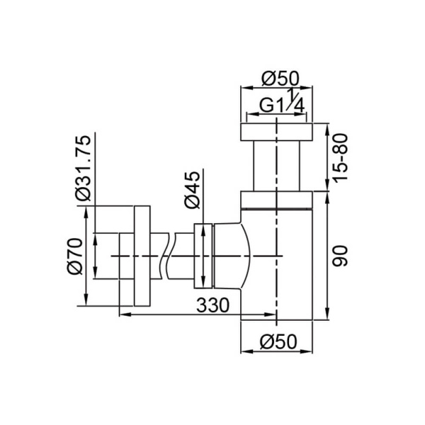 Сифон для биде d=320мм мет ALCAPLAST A45E