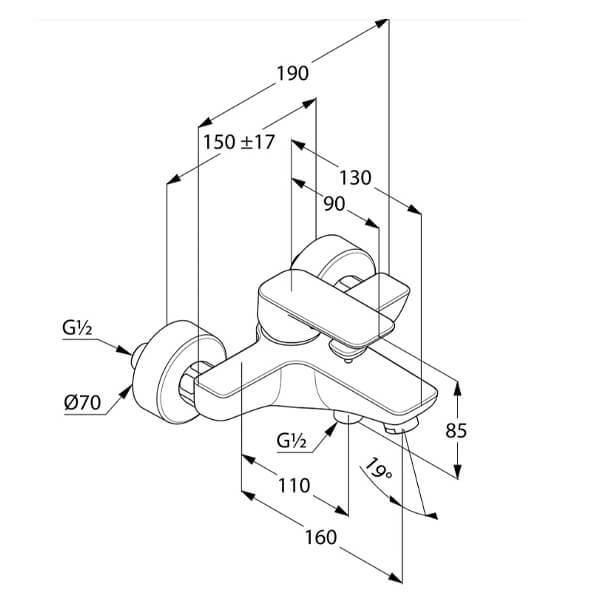 Смеситель для ванны и душа Kludi Pure&Easy 376590565 хром Смеситель для ванны и душа Kludi Pure&Easy 376590565 хром