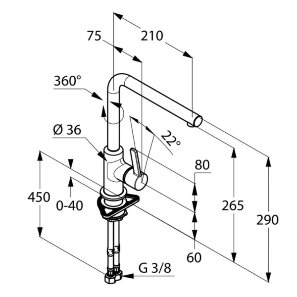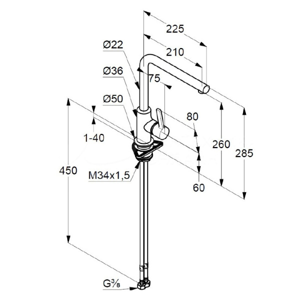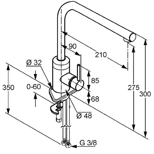 Длина излива см 21,7