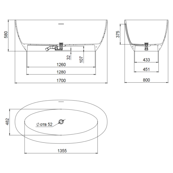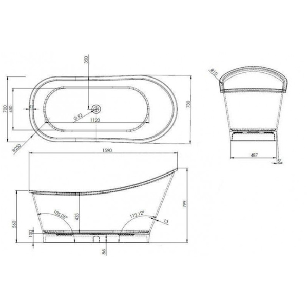 ВАННА AURORA L 1590x730 h810 + слив-перелив хром Romance Collection ВАННА AURORA L 1590x730 h810 + слив-перелив хром Romance Collection