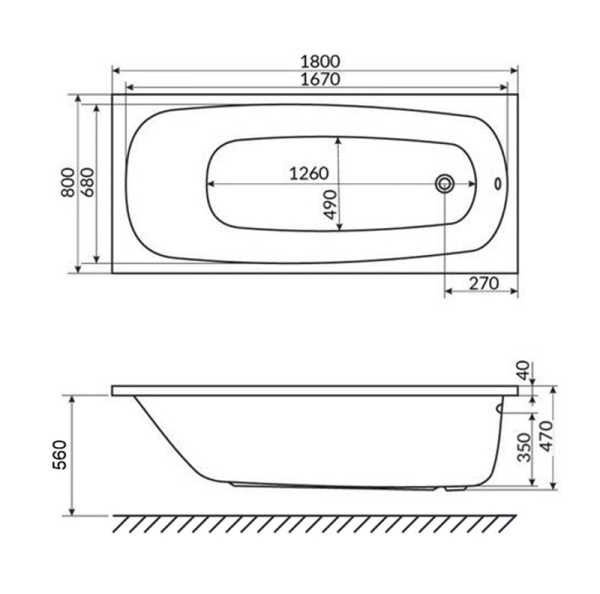 Акриловая ванна Whitecross Layla 180x80 белая, без каркаса